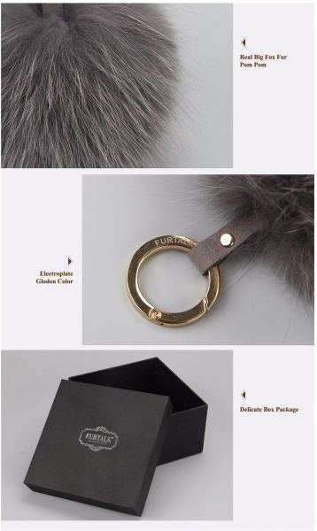 Luxury pompom Key chain and bag chain made of 100%Real Natural FOX Fur for mother day valentine and anniversary Gift with Boxsame as photo.