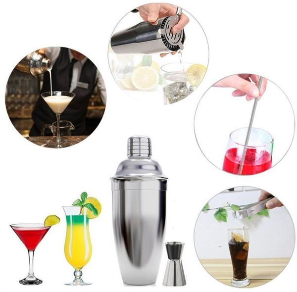 Stainless Steel Cocktail Shaker Set 5pcs Bartender Kit with Martini Strainer Jigger Shot Stirring Sp