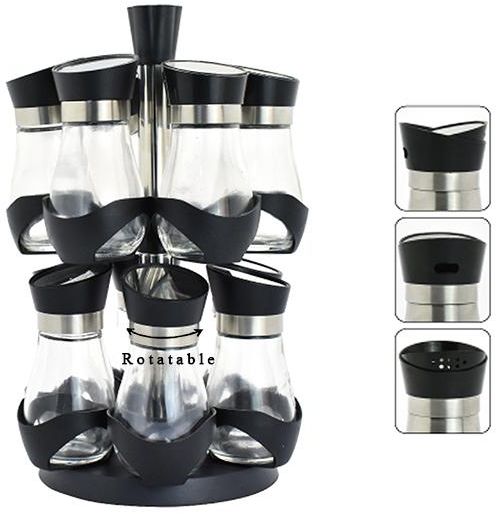 Glass Spice Jar with Black Rotatable Plastic Stand Set of 12Pcs Q-SPC-12
