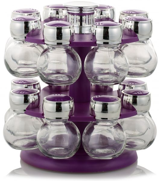 This 16 Piece Glass Spice Jar Rack Set features a round rotating spice rack to house the spice jars 16 Piece Glass Spice Jar Rack Set is elegant and is perfect for managing the storage of your favourite herbs and spices.