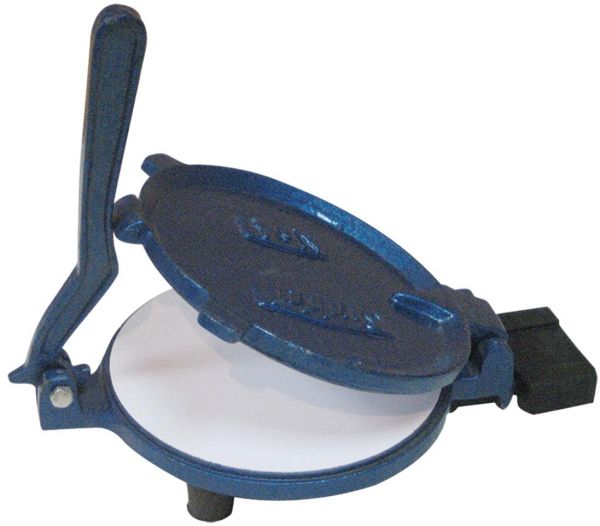 - This puri press has a handle to press the plates together