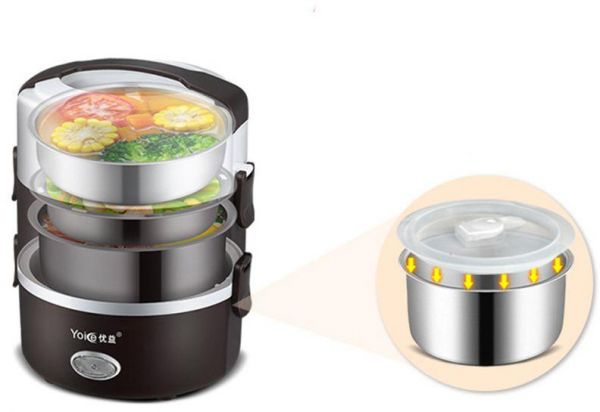 Multifuction 2L 3 Layers Portable Modern Stainless Steel Mini Rice Cooker Electric Steamer Lunch Box