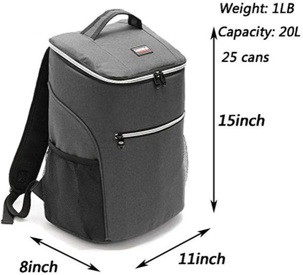 Large Lunch Cooler Backpack: Deep main storage compartment is large enough to provide roomy capacity for your meals, beers, snacks or other food, can hold at least 25cans to keep things cold/hot for 6-8 hours, anti-leaking, easy to clean when not use