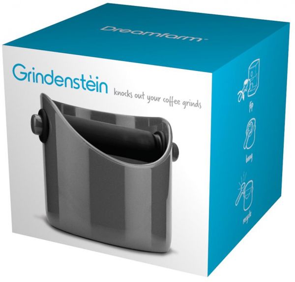 Grindenstein is a compact coffee knock box that bangs out your coffee grinds. It’s super strong and sturdy, and even tucks away on the drip tray of your espresso machine for space-saving storage.