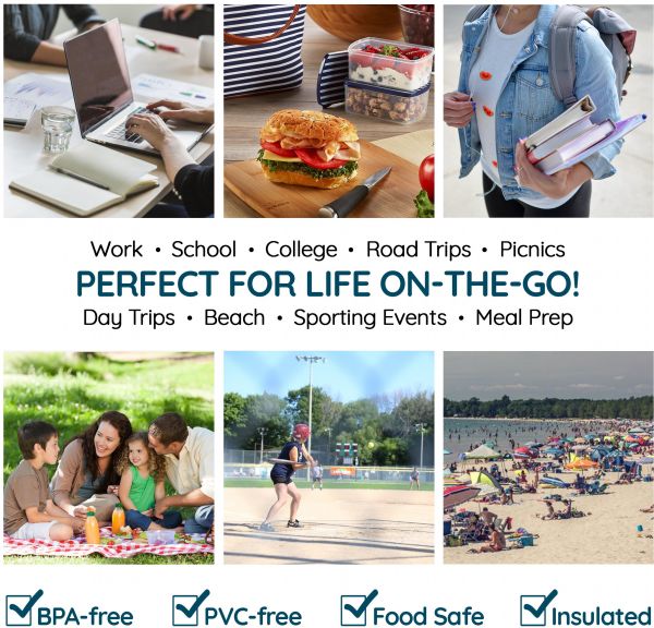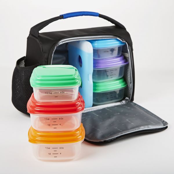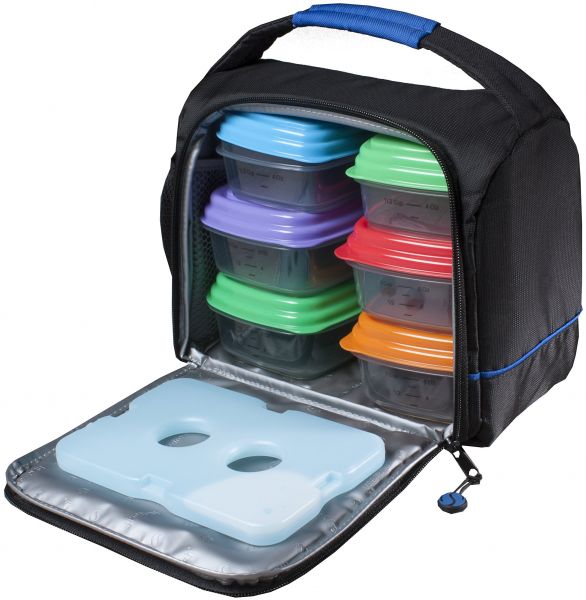 SET INCLUDES: (1) Insulated lunch bag, (6) reusable portion control containers & (1) ice pack