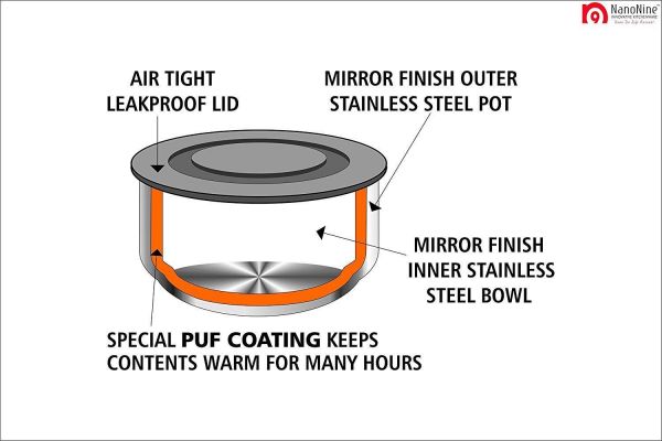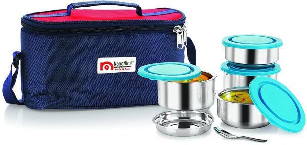 - NanoNine Tiffiny Meal Pack 4 pcs with thermal bag. Double wall insulated containers, and air tight food grade lids with 5 years guarantee