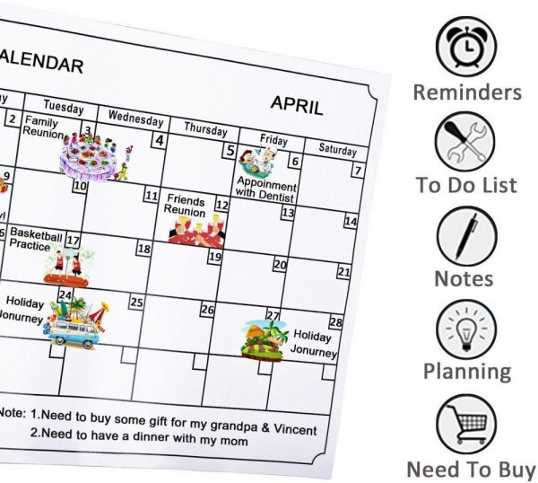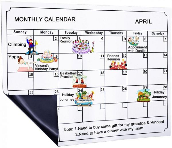 Magnetic Fridge White Board Planner Refrigerator Calendar Magnets, Dry Erase and Reusable