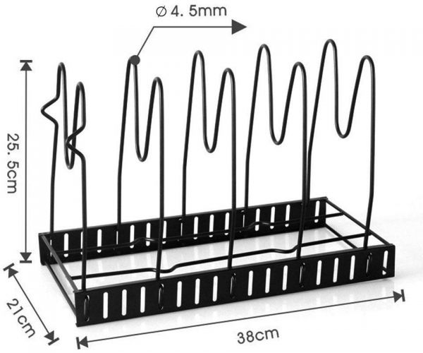 Made of durable coated iron to ensure safety and durability. Each divider is designed with 0.18” wire diameter; the rack can hold up to 5kg pans and no need to worry about the dividers would pop up. (Note: Do not place pots with food or water inside on the upper shelves!)