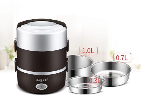 Multifunction 2L 3 Layers Portable Modern Stainless Steel Mini Rice Cooker Electric Steamer Lunch Bo