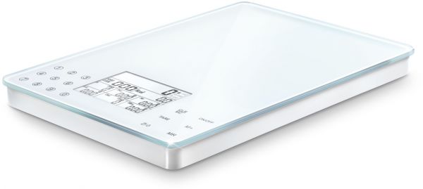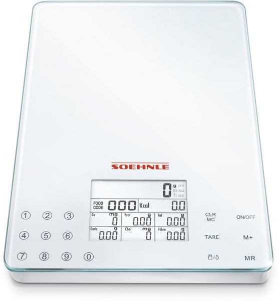 The Food Control Easy knows what's good for you. Thanks to an extensive database with 950 common foods, it informs you concisely on the most important energy and nutritional values: Calories, carbohydrates, protein, fat, cholesterol, fiber and calcium are captured. The convenient sum memory adds all nutritional values and is indispensable for all diabetics or for the optimum monitoring of any diet. The all-round talent is easy to control with the patented operating keys with Sensor Touch technology and easy number codes. Add-weight function, auto-off function and measurement of liquids in ml is convenient. The smart scale made of safety glass weighs up to 5 kg with a graduation to 1 g precise. Healthy living made easy!