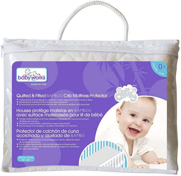 The baby works quilted & fitted bamboo mattress protector is soft and comfy on baby’s delicate skin. The rayon from bamboo terry cloth fibers are naturally & hypoallergenic which helps to prevent dust mites and mold from breeding in the mattress. It is super absorbent & breathable and of course, 100% waterproof.