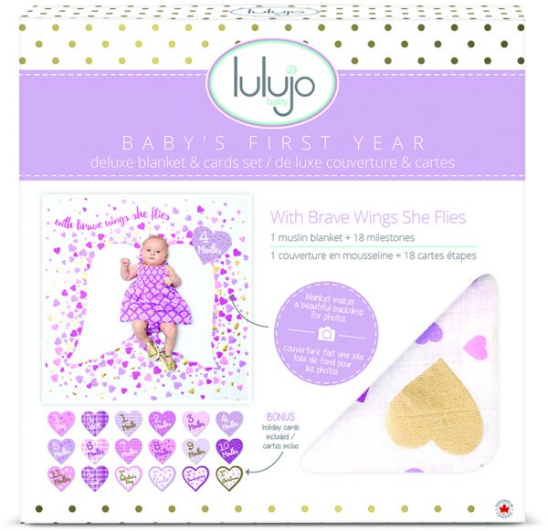 Lulujo Baby's First Year Blanket & Cards set - With Brave Wings She Flies