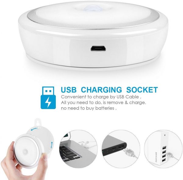 ▲ USB RECHARGEABLE: This LED Motion Sensor Light Built-in USB rechargeable lithium battery. Just charge it with USB for 1.5 hours, it will light up your bedroom, kitchen, stairs, corridor for more than 30 days. Compatible with power bank, PC USB port, phone charger.