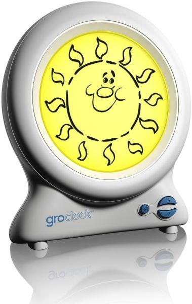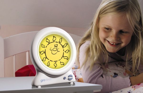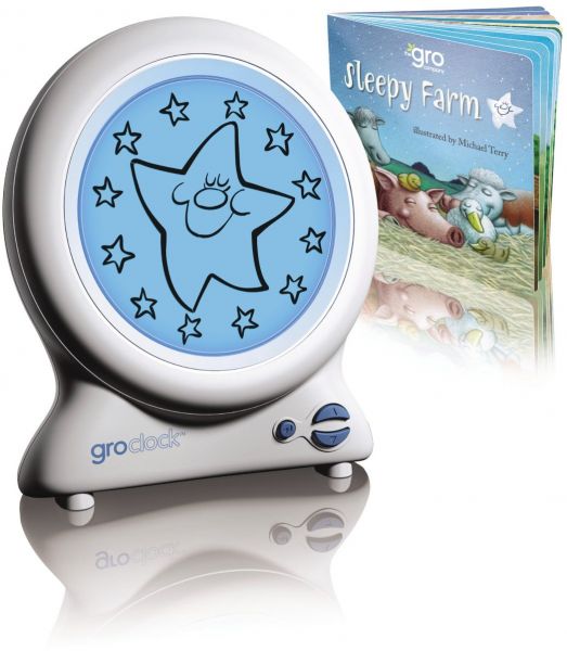 The Gro-Clock is used around the world with great success to train toddlers to stay in bed until the time the parents desire. It's much more than just a clock – it's a whole sleep system. Starting with bedtime, the parent reads the specially written 'Sleepy Farm' book (included) and explains that the child should look at the clock to see all the stars in the sky around the moon.