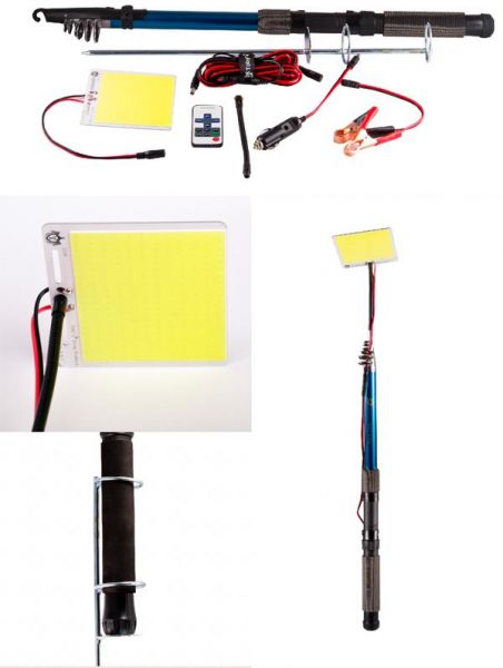 Toby's 12V Camping light Picnic light barbecue light on fishing Telescopic rod light LED 200 watts with remote control Toby's 12V Camping light is ideal to be carried for your picnics, safari, camping, etc. This picnic light is available at Souq.com. The Toby's 12V Camping light Picnic light barbecue light on fishing Telescopic rod light LED 200 watts with remote control is designed to help you in times of emergency. This light is ideal to be carried for camping, safari, picnics, or outdoor barbecue plans. It features a portable design, so it can accompany you anywhere you go. You can connect this light directly to your car’s battery or car cigarette outlet. Also, it can source energy from a 12V power bank. Designed with an LED light panel of 200W, this light can perfectly illuminate a dark area. Also, it comes along with a 4.5m fishing telescopic rod that is collapsible and extendable, so you can install it at any height you want.