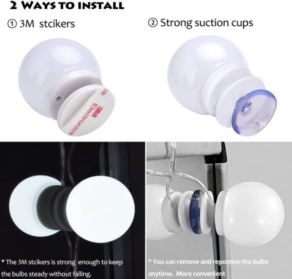 pgraded Hollywood Style LED Vanity Mirror Lights Kit, 3 Colors Dimmable Mirror Light Bulbs, Makeup L