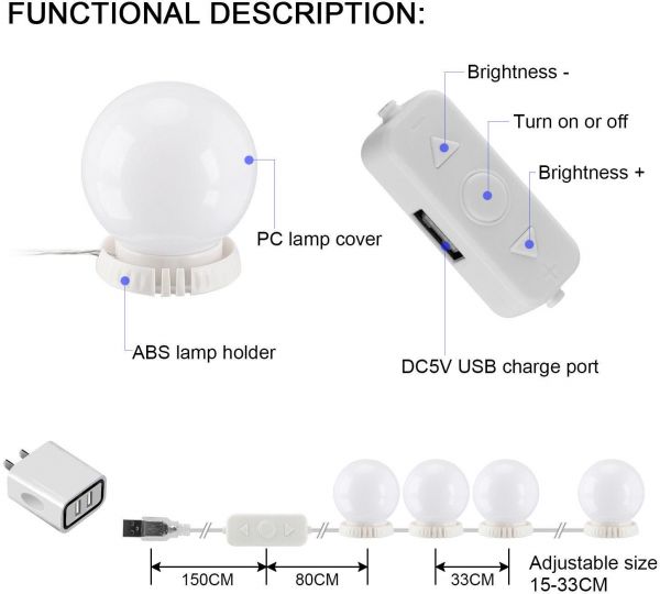 Make up Mirror Lights LED Hollywood Kit Bulbs Wall Vanity Light Dimmable Lights