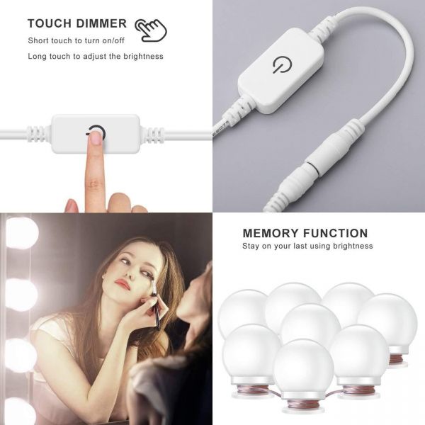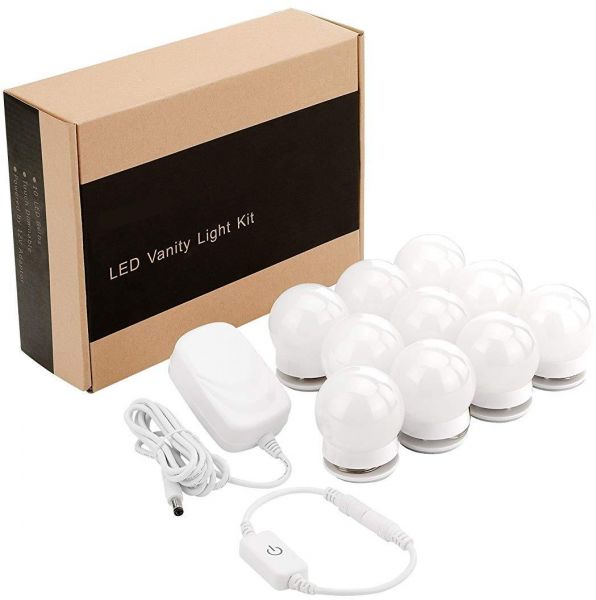 - 10 LED bulbs produce a soft and bright glow. 6,000K white light closely simulates natural sunlight, providing a professional color-correct lighting for makeup.