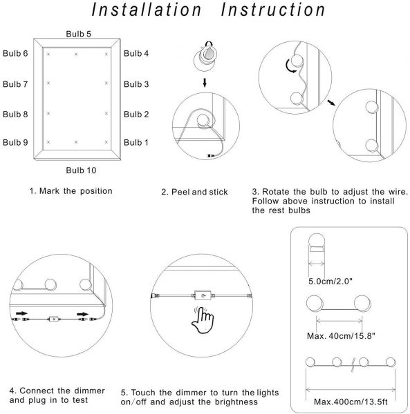 - 13.5ft/4m in full length makes it fit most mirrors. Excess wires can be hidden under the bulbs to keep your mirror neat after installation. The extra bulbs can be cut off .