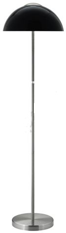 147 cm height. Base diameter 40 cm. Takes 2 light bulbs. E 27 bulb holder. Modern Design. Chrome finish. Black top. With long power cable.