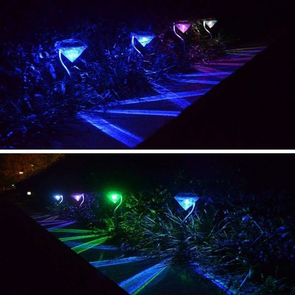 ★ Multi COLOR SOLAR DIAMOND GARDEN LIGHT: solar powered stainless steel diamond lawn night lights pathway lighting make landscape lighting appealing! If you want to make your garden look very beautiful, Then look no further, because these unique diamond solar lights will bring you the solar garden light decoration ambiance.