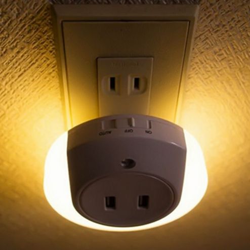 1X LED Night Light with Light Sensor and Dual USB Charge Port