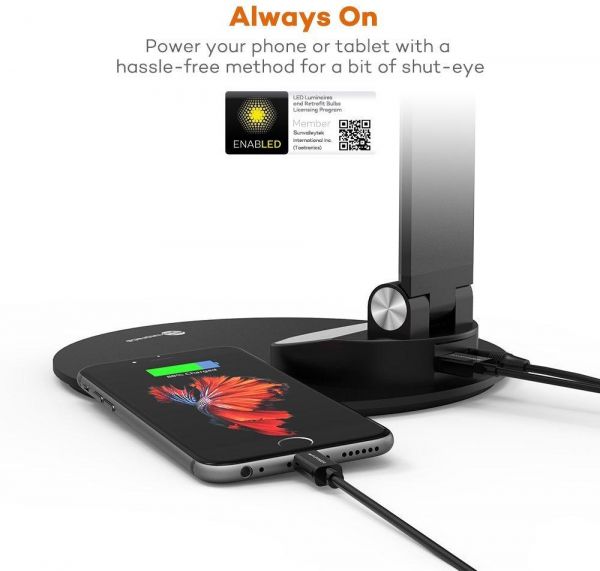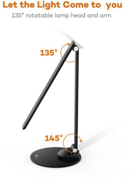 TaoTronics DL19 LED Desk Lamp with USB Charging Port, Eye- care Dimmable Lamp, 5 Color Temperatures