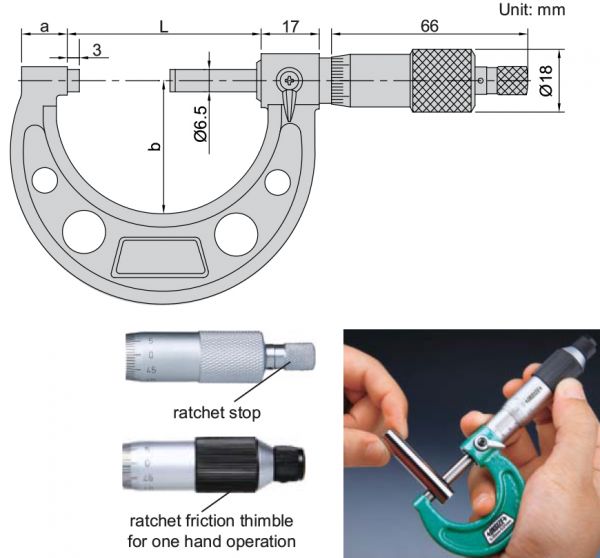- Graduation: metric 0.01mm, imperial 0.0001"