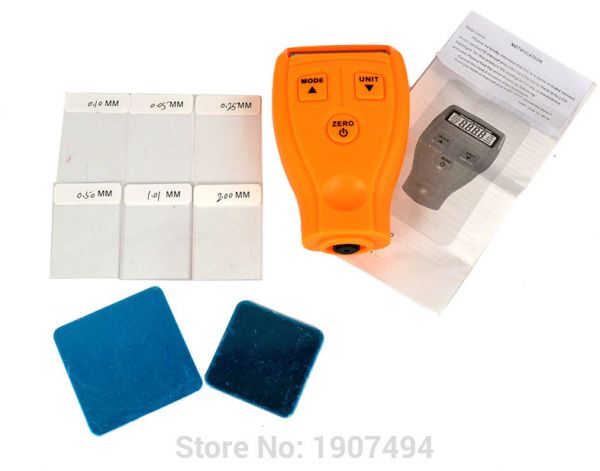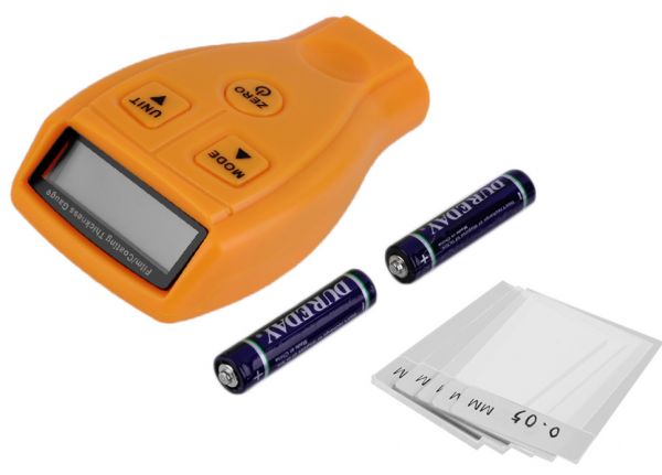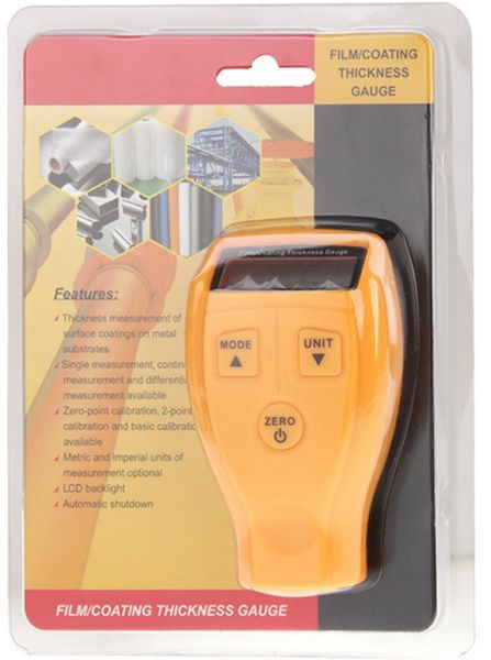 Varnishes: Varnishes, because there is no metal belonging blending non-metallic coating can be measured. This unit is perfect for manufacturing company, metal machinery industry, chemical industry, and commodity inspection especially in automobile trading.Auto power off mode designed to conserve battery lifeCompact design and easy to carryZero, one-point and two-point calibratingDigital LCD displayComes with iron base and non-iron (aluminunm) basePortable, user friendly and easy to carry even in pocketProvides Single, Continuous & Difference measurement mode with metric/imperial conversion Specifications:Target Measure: Non-metal coating thickness on the metal surfaceMeasuring Range: 0~1.80mm/0~71.0 mil nonmetal coating on metal surfaceAccuracy: ±0.03mmPower Supply: 2 x 1.5V AAA battery(without battery)Minimum base diameter: 50mmCritical base thickness: 0.5mmDisplay resolution: 0.01mm/1milOperating Temperature:0~40°COperating Humidity: 10~95%RHDimensions: 61.98 x 30.57 x 104.99mmWeight: 63.98g (without battery) Package includes:1 x Coating Thickness Gauge (main unit)6 x Standard pieces1 x Instruction Manual