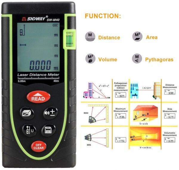 40m Digital Laser Distance Meter Sw-m40 Laser Rangefinder Bubble Level Tape Measure Area/volume Tester Laser Rangefinders