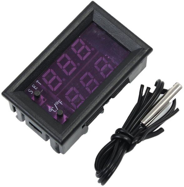 Power supply for the controller: DC 12VProgrammable mini digital temperature control unit with -50℃ -110℃(-58℉-230℉) measuring rangeDual LED display the set temperature and current temperature with waterproof NTC temperature sensor probe
