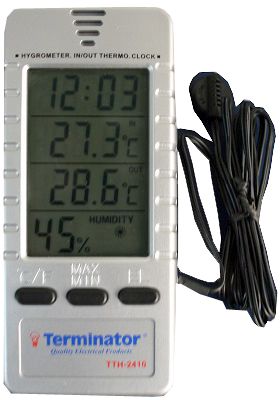 Terminator In/Out Temperature Thermo Hygrometer - Clock (4:1) (-50oC ~ 70oC) Blister Packing.