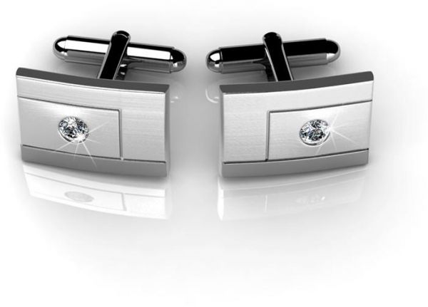 18K White Gold Plated Cufflinks with Crystals