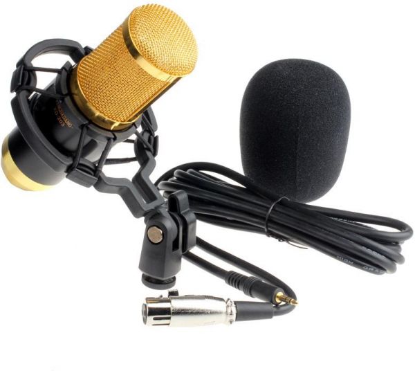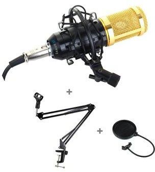 BM-800 Condenser Microphone Mic for Studio Broadcasting and Recording with Shock Mount, XLR Cable and Pop Filter, 3.5mm,