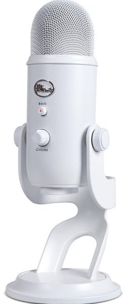 Yeti is the most advanced and versatile multi-pattern usb microphone available anywhere. Combining three capsules and four different pattern settings, yeti is the ultimate tool for creating amazing recordings, directly to your computer. With total whiteout finish, yeti whiteout adds style and energy to your recording or broadcasting setup. Now you can capture anything with a clarity and ease unheard of in a usb microphone. Featuring blue's innovative triple capsule array, yeti can record in stereo or your choice of three other unique patterns, including cardioid, omnidirectional, and bidirectional. Utilizing a high quality a-d converter, a built-in headphone amplifier for zero-latency monitoring, and direct controls for headphone volume, pattern selection, instant mute, and microphone gain. With no drivers to install, yeti whiteout is the most versatile usb mic lighting up the airwaves today.