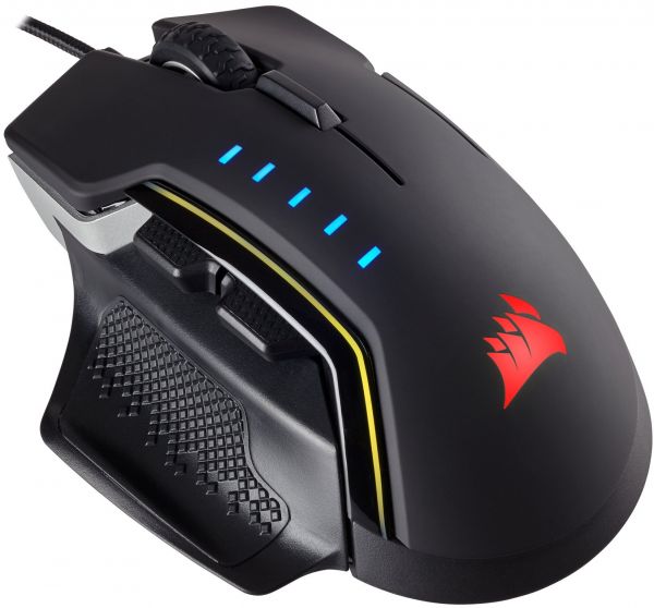 Corsair Glaive RGB is the ultimate gaming mouse in performance and comfort. The contoured shape is designed forextended play. A custom high-accuracy 16000 DPI optical gaming sensor ensures maximum performance. Choose between 3 styles of interchangeable thumb grips for a tailored fit. Onboard profile storage saves lighting effects, macros and DPI settings for universal access to your settings on any PC.