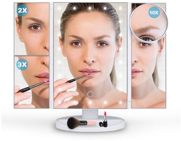 3.Adjustable stander that allows you to position it to your preference, and to use the mirror even if you’re standing up. Tri-folded design will save a lot of space of your table.