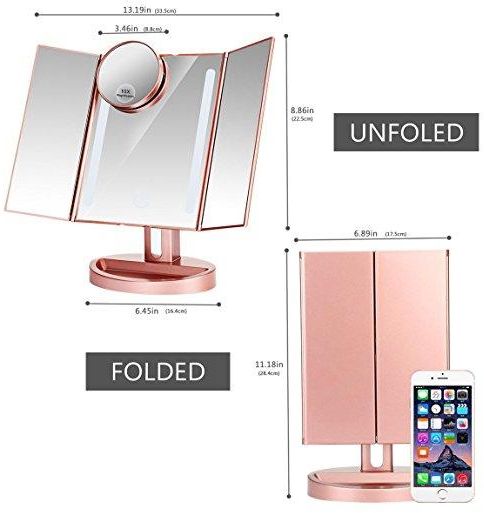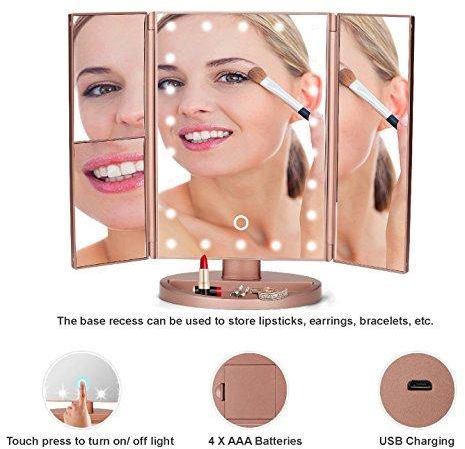 Lighted Makeup Mirror: 3 Panel provide a wide-angle viewing for you to see clearly your facial features and make a more perfect makeup with each detail taken care of.
