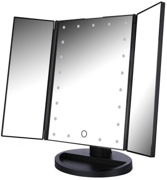 Black Easehold Tri-Fold Rotatable Vanity Mirror with LED Light - STK12