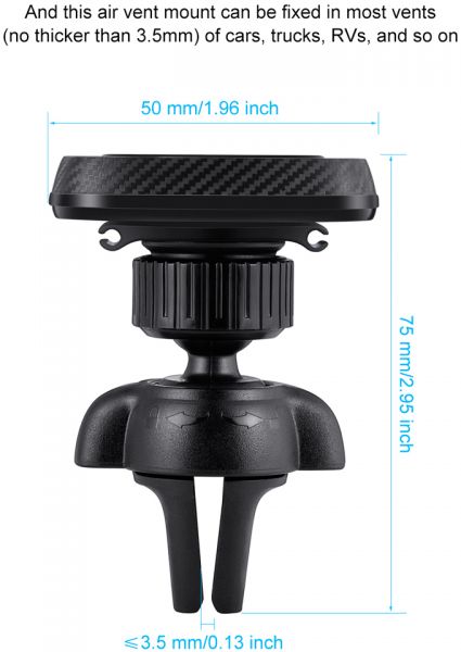 4. The air vent mount fits for most vents, no thicker than 3.5mm.