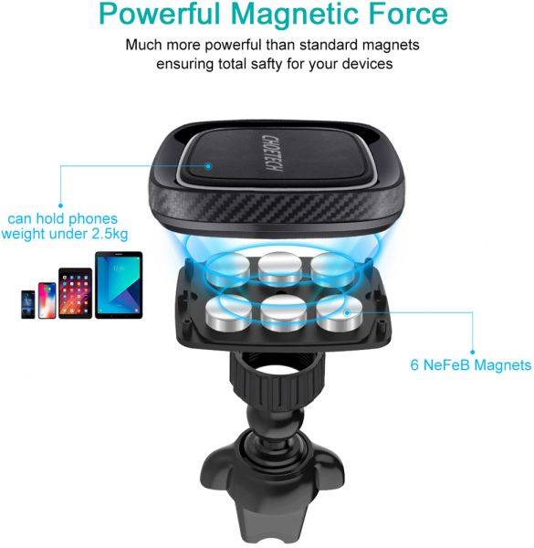 描述:【Powerful Magnetic Force 】Adopted Premium NeFeB Magnets, much more powerful than standard magnets, this air vent car phone holder will provide 100% secure fixation, ensuring total safty for your devices.