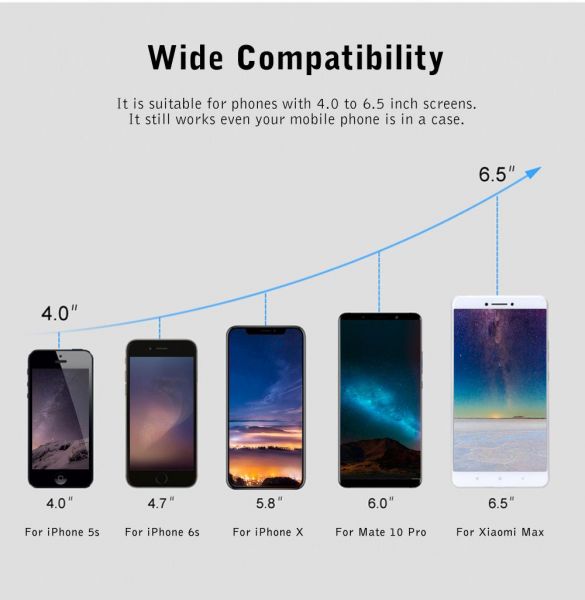 - It is suitable for mobile phones (4.0 - 6.5 inch) with wireless charging function.