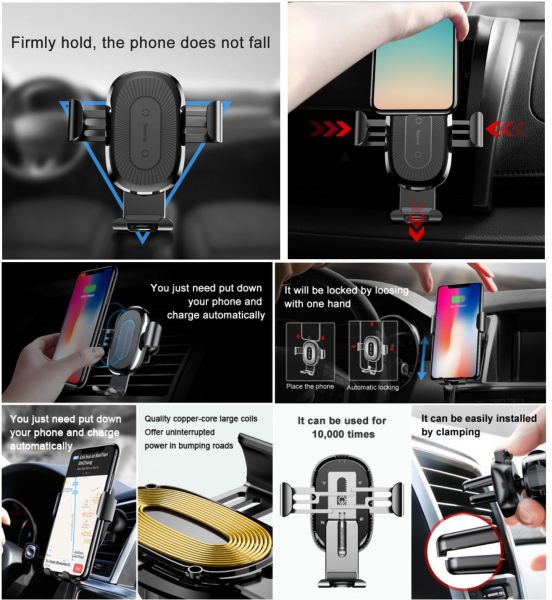 - Gravity Car Mount: It can be automatically locked with gravity after a phone is placed inside and unlocked after the phone is taken away.