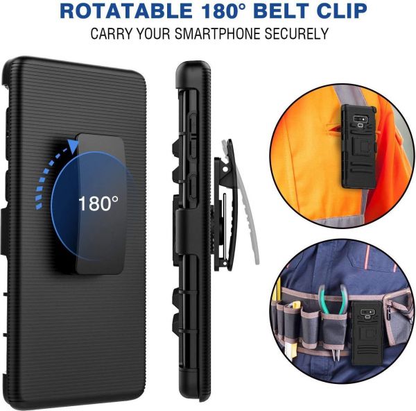 - FUNCTIONAL - 180°rotatable holster belt clip for carrying convenience while built-in kickstand for hands-free viewing.