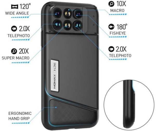 MOMAX X -Lens Case for iPhoneX 6 in 1 Dual Optics Lens Kit 2X Telephoto Wide-angle 10X /20X Mac