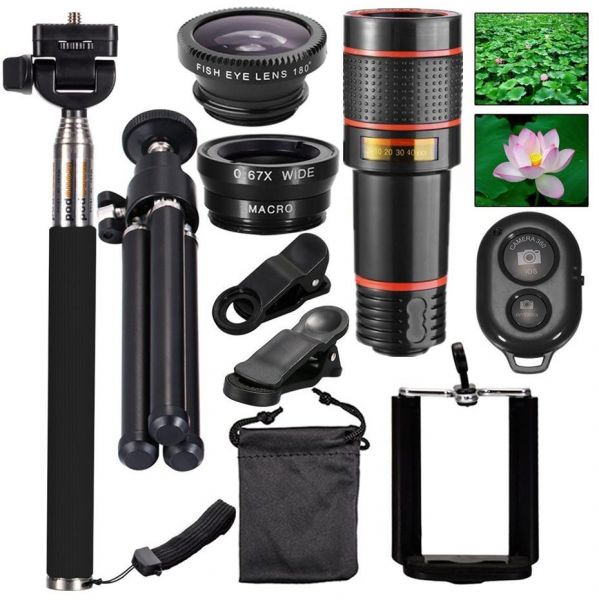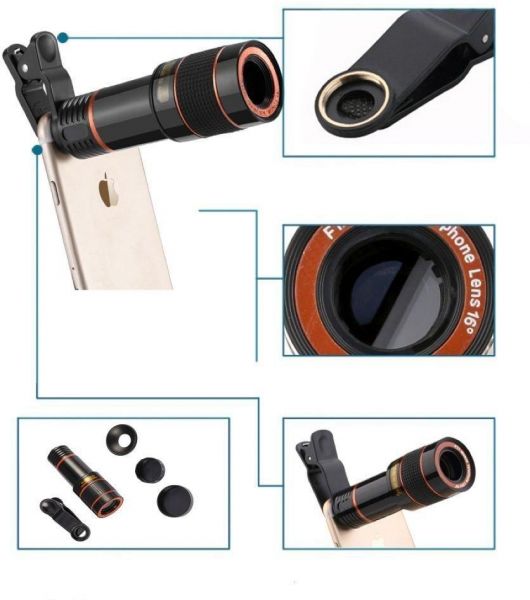 TANIC Mobile Phones Lens 10-in-1 Lens Kit for Smartphone, 12x Telescope for telephoto / fisheye lens