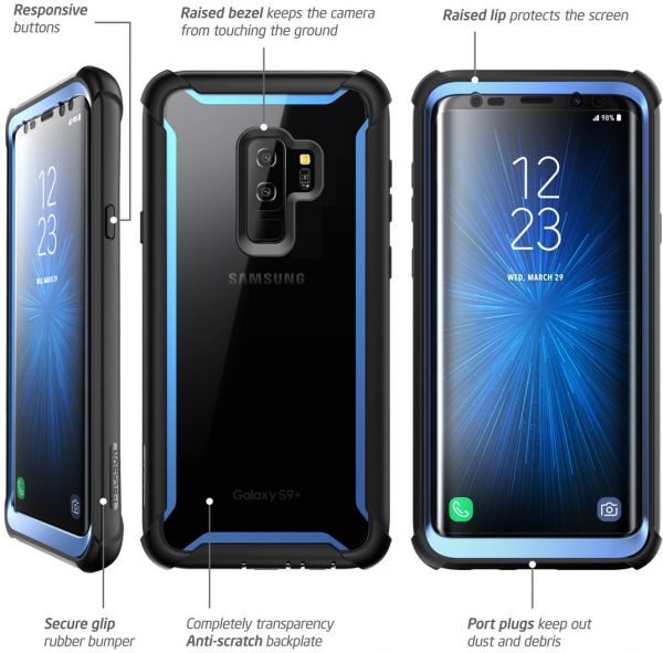 The Ares full-body clear case for the Samsung Galaxy S9+ Plus offers up 360 degree protection, premium materials, at an affordable pricepoint. The dual-layer design features front and back scratch-resistant plates that snap together for easy and straightforward installation. The front plate includes an integrated curved screen protector that was designed not to affect touch-sensitivity, while fortified bumpers bring added protection at each corner for top-of-the-line defense against drops. This slim, stylish, and highly defensive phone case was built for anyone and everyone, and is your Samsung Galaxy S9 Plus's new best friend. PLEASE NOTE: This is a black back case with grey front cover.