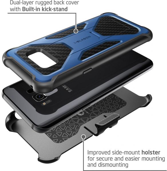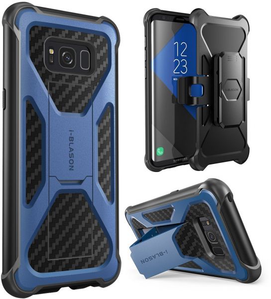 Our Transformer case is a unique product. Featuring a holster that's capable of 360 degree rotation, this case also boasts a built-in kickstand allowing for hands-free viewing of movies and shows. Raised edges protect your S8+ Plus screen and camera lens. Complete with a rugged carbon fiber pattern, the Transformer truly ensures the safety and versatility of your Samsung Galaxy S8+ Plus.