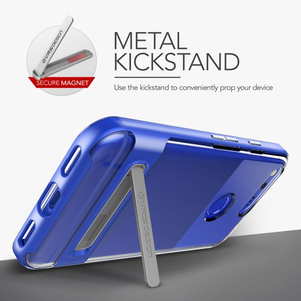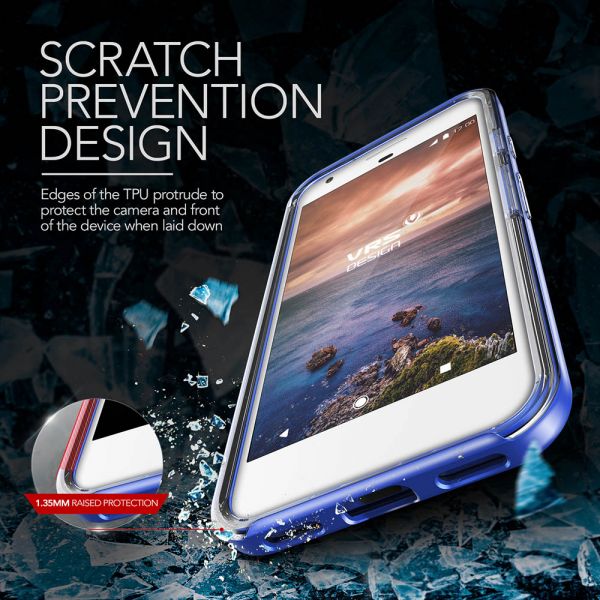 VRS Design Crystal Bumper Case for the Google Pixel is the ideal case to show case your Pixel with a Crystal clear TPU back while also promising Military Grade MIL-STD 810G 516.6 level protection with the combination of its dual-layered bumper protection. The Crystal Bumper case also allows you to view Videos effortlessly via the built in Magnetic Kickstand which is easy to open. The edges of the Transparent TPU protrude 1mm to protect the screen from scratches when laid down. A beveled, circular opening in its back enables fingerprint access. The TPU buttons allow extra responsive feedback and protection while precise cut-outs create fully accessible ports.