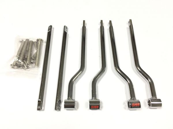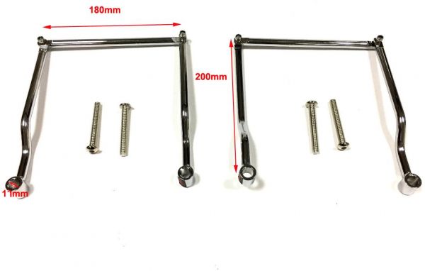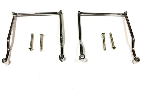 Chrome plated steel brackets hold throw over saddlebags away from brake caliper and swing arm
